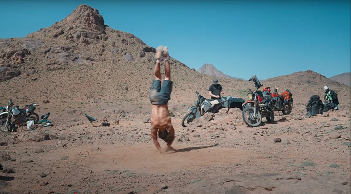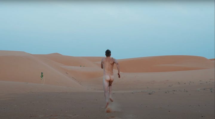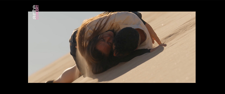 Bos本人執導的《WEST》則以輕盈筆觸描繪三名摩托車騎士自荷蘭遠赴迦納的旅程。他們蓄著長髮、嬉皮作派,一邊跳breaking、一邊碎碎念。影片在沙漠拍攝的段落,與《Seasons of Dance》的「夏天」形成鮮明對照。前者的沙漠純淨抽象,如植田正治拍攝鳥取砂丘;後者則髒亂、活力四射,甚至赤裸奔跑,宛如要被太陽烤乾。兩種沙漠意象,折射出舞蹈影像多樣的語言。